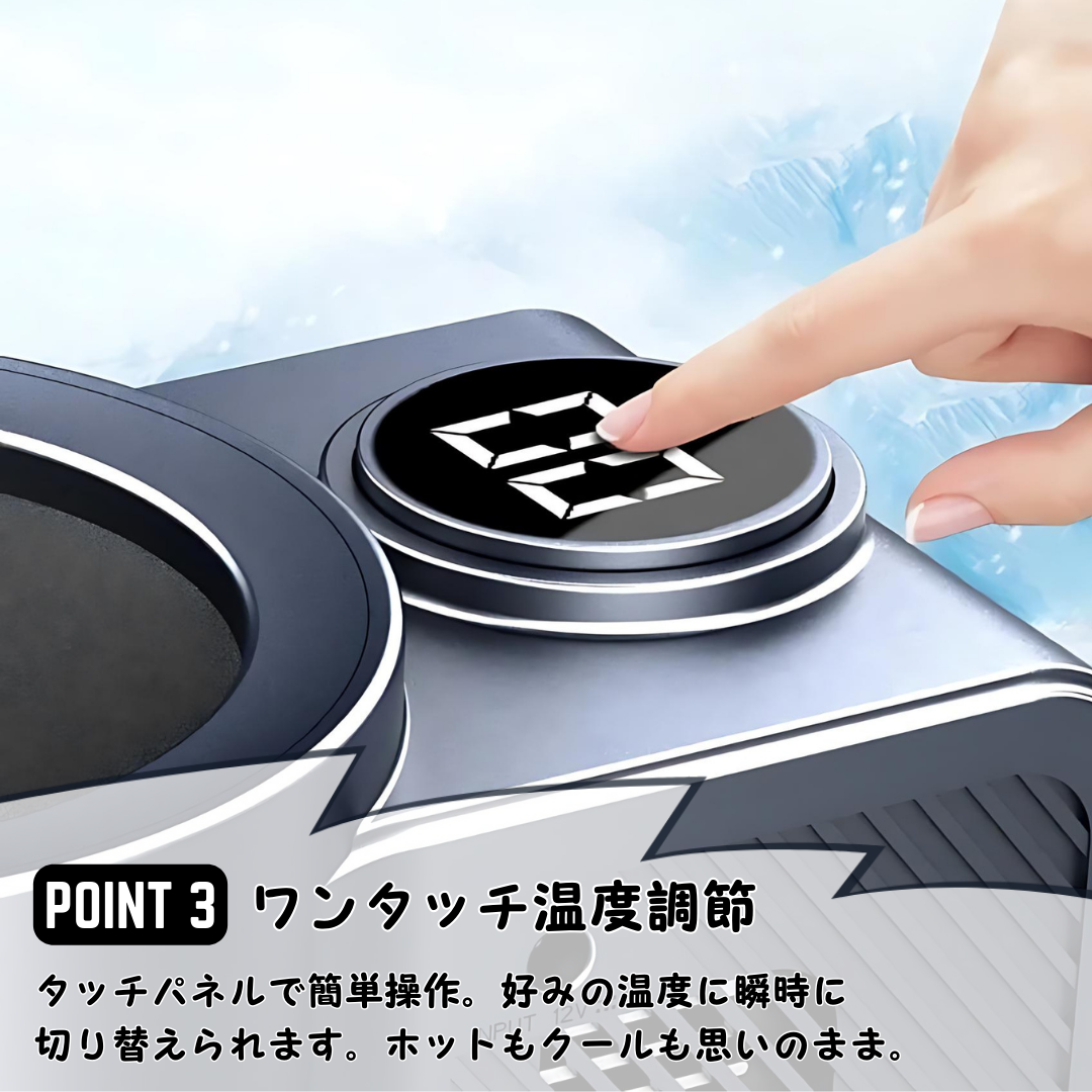 - 温度調節機能: ワンタッチ操作で簡単に温度を切り替えられます。お好みの温度に設定して、快適なドライブをお楽しみください。
